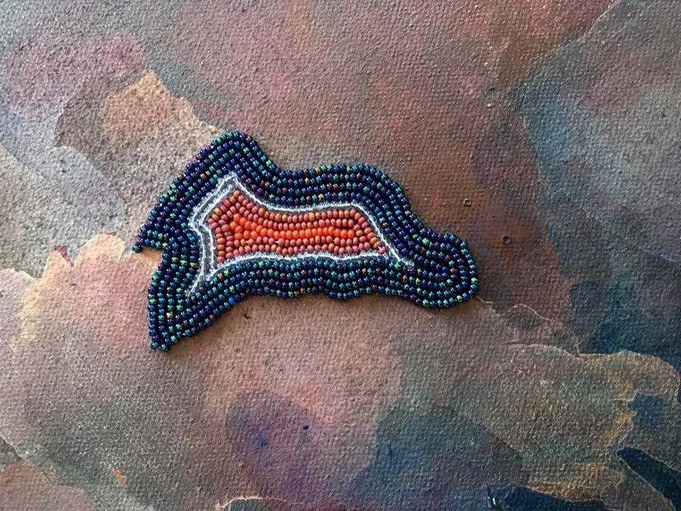 Beadwork through deer hide.
